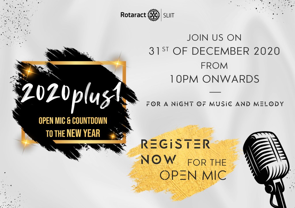 2020plus1 was the last project for the year 2020 done by the Rotaract Club of SLIIT under Club Service Avenue. This was a virtual “31st open mic night” with an exciting New Year countdown. It was a memorable New Year’s Eve along with music and exciting games for all participants. This remarkable Club Service initiative took place on the 31st of December 2020 from 10 pm onwards via Zoom.