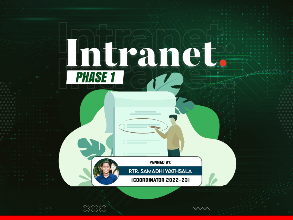 Intranet ව්යාපෘතියෙහි පළමු අදියර 2022 අගෝස්තු 8 වැනි දින රාත්රී 9.00 සිට Google Meet තාක්ෂණය ඔස්සේ පැවැත්විණි. ව්යාපෘතිය 36 දෙනෙකුගේ සහභාගීත්වයෙන් පැවැත්විණි.